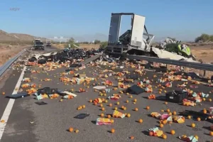 Tarsus-Pozantı Otoyolunda narenciye yüklü kamyon devrildi