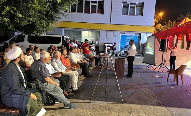 Ashab-ı Kehf Platformu çatısı altında her hafta perşembe günü saat 18.00 ile 21.30 arasında düzenli olarak bir STK’nın sunumunu üstlendiği “Filistinliler ile Dayanışma Çadırı Nöbeti” bugün de Platform Üyesi “Peygamber Sevdalıları Tarsus Temsilciliği” üstlendi.