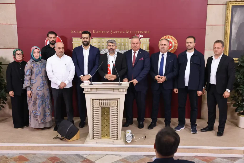 Küresel Gazze Yürüyüşü’ne (Global March to Gaza) katılmak üzere gittiği Mısır’dan dönen HÜDA PAR Mersin Milletvekili Faruk Dinç, Meclis’te düzenlediği basın toplantısında yürüyüşün Türkiye temsilcileri ile birlikte basın toplantısı düzenledi.