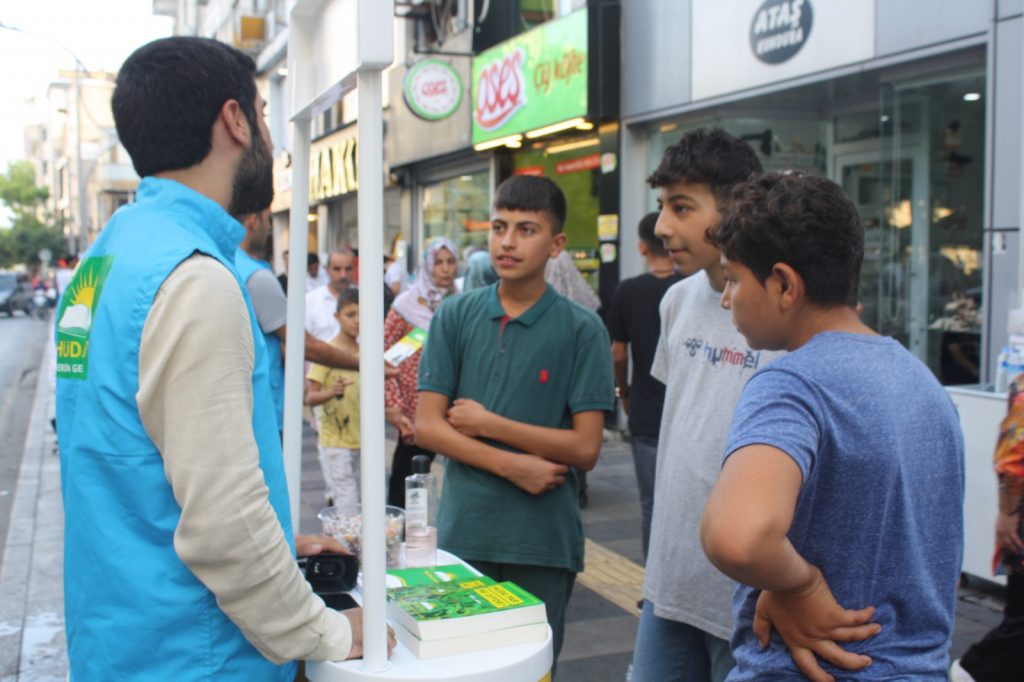 Çalışmaları hakkında konuşan HÜDA PAR Mersin İl Gençlik Kolları Başkanı Habib Armağan, partilerini tanıtan broşür dağıtıp merak edilen sorulara cevap verdiklerini, üyelik çalışması yaparak, HÜDA PAR’ın misyonunu anlatmaya çalıştıklarını ifade etti.