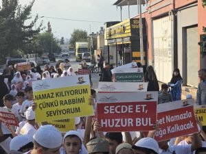 Program, Barbaros Merkez Camii’nde başladı. Çocuklar, cami cemaatiyle birlikte ikindi namazını eda ettikten sonra tekbirler ve flamalar eşliğinde Ahmet Gamgam Camii’ne yürüdü. Miniklerin coşkulu yürüyüşü, etkinliğe ayrı bir anlam kattı.