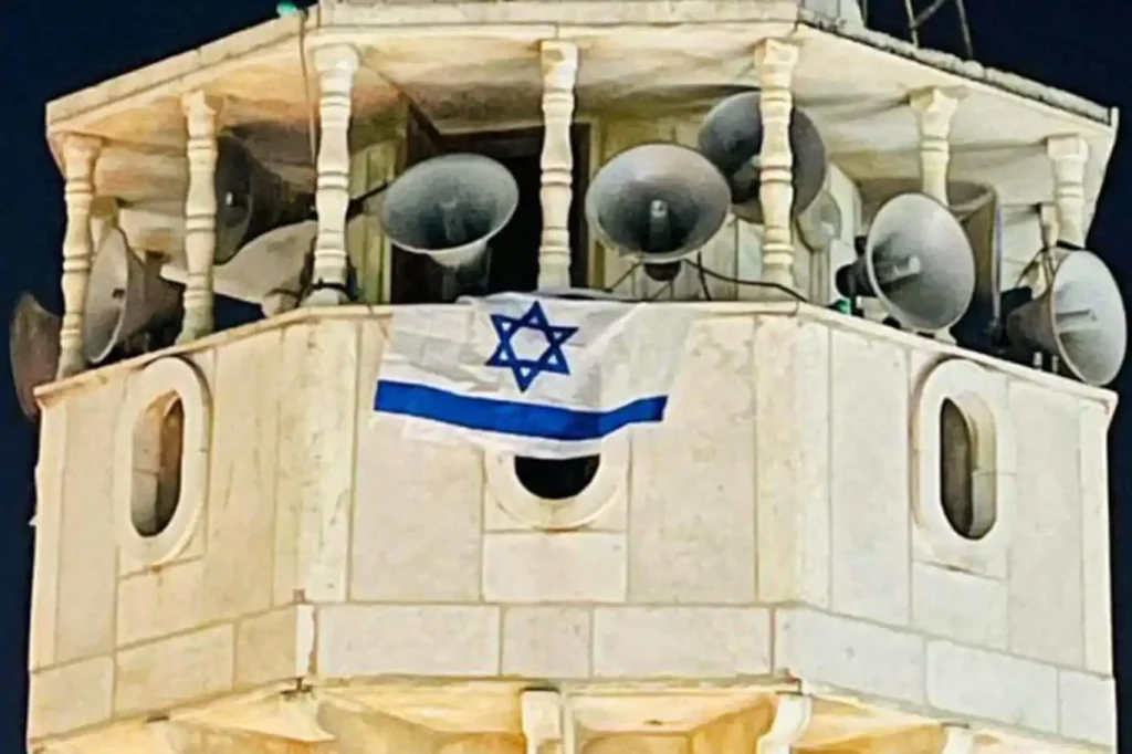 Siyonist işgalciler, cami minaresine paçavralarını asıyor
