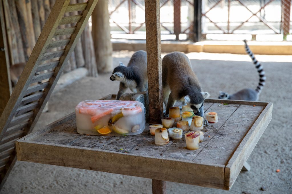 Doğa Parkı sakinlerinin sıcak havalardan olumsuz etkilenmemesi adına yapılan uygulama sayesinde hayvanlar, serinlerken besleniyor. Türlerine göre yaşam alanlarında yer alan yapay havuz ve şelaleler de hayvanların serinlemesini sağlarken, günün belirli saatlerinde özel olarak hazırlanan buzlu meyveler ikram ediliyor. Doğa parkı sakinlerine; içerisinde elma, armut, muz, kivi, portakal, havuç, kuru incir, salatalık, marul gibi meyve ve sebzelerin yanı sıra ceviz, fındık gibi kuruyemişlerin de yer aldığı buzlu meyve kalıpları veriliyor. Bu sayede hayvanlar, serinlerken beslenmenin keyfini çıkartıyor.