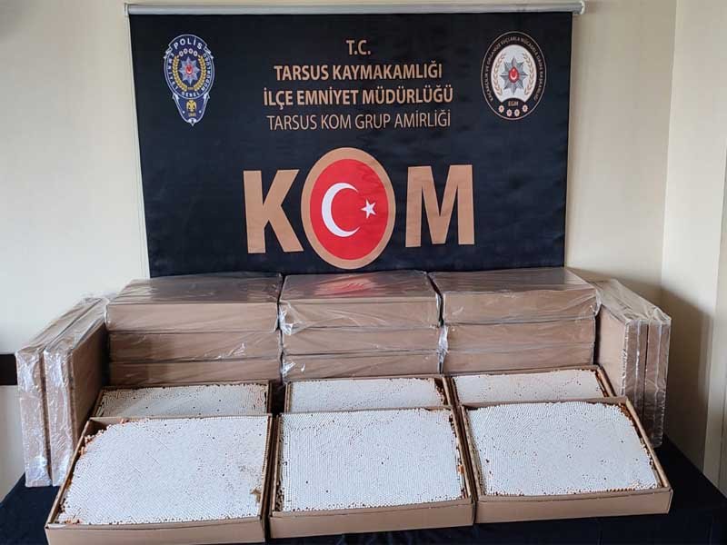 Tarsus İlçe Emniyet Müdürlüğü Kaçakçılık ve Organize Suçlarla Mücadele Grup Amirliği ekipleri ilçe genelinde bandrolsüz ve faturasız içi tütün doldurulmuş makaron satan şahıslarA yönelik operasyon yapıldı. yapılan çalışmalar neticesinde ekiplerimizce M.S isimli şahsın aracında içi tütün doldurulmuş makaron olduğu tespit edildi.  Yapılan aramada 100.000(Yüzbin)adet bandrolsüz ve faturasız içi tütün doldurulmuş makaron ele geçirildi. yakalanan şahıs daha sonra adli mercilere sevk edildi.