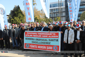 Tüm Taşıma İşçileri Sendikası (TÜMTİS), Mersin Limanı’nda sendikal örgütlenmenin ardından işten çıkarılan 180’in üzerindeki işçi için basın açıklaması düzenledi.