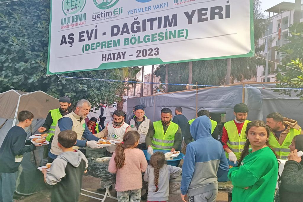 Umut Kervanı, Hatay /İskenderun bölgesinde her gün 7 bin kişiye sıcak yemek ikramında bulunuyor.
